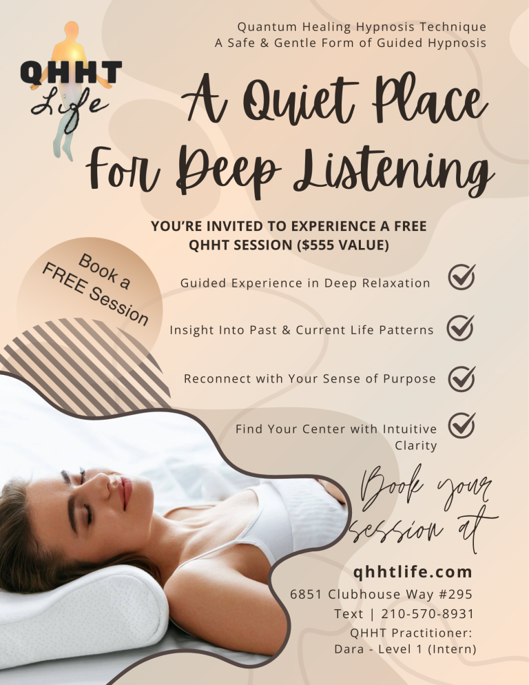 For a limited time, QHHT Life is scheduling FREE QHHT sessions while Dara is a Level 1 intern. These sessions will fill quickly, as this service is valued at well over $500 in San Antonio. Schedule your Virtual Discovery Call (VDC) with today.